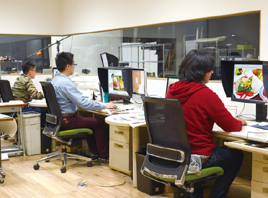 トータルカラーマネージメント化により徹底したカラー濃度管理ができ、ラフカンプの段階からハイクオリティーな仕上がりと効率的な生産力という理想的な相反する成果を実現しています。スムーズな業務進行とスピーディーな生産性により、納期短縮、コストダウン、高い品質などを実現し、幅広いニーズに柔軟に対応致します。