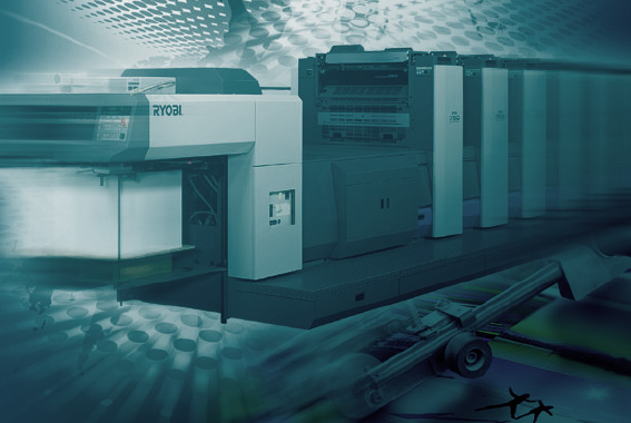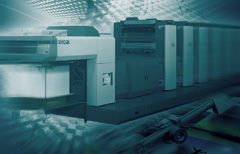 国際規格CIP3準拠「RYOBI 758」は両面同時印刷機(8色機)は、一回の紙通しでフルカラーの両面印刷ができます。表面印刷後の乾燥待ち、用紙の積替えなどの裏面印刷に要する時間的なロスが削減でき、片面4色印刷機で2回通した場合と比較して印刷時間を半分以下にできます。